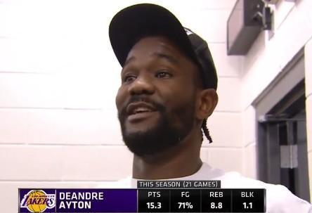 詹姆斯在末节独揽12分,尤其在关键时刻砍下7分1抢断帮助湖人锁定胜局。赛后,湖人中锋艾顿接受了采访,盛赞了詹姆斯第四节的表现:“关键时刻。这就是关键时刻的基因。感觉像在看电影。那是属于GOAT的时刻。我太激动了。我甚至停止了庆祝,就为了不错过他的任何精彩瞬间。”