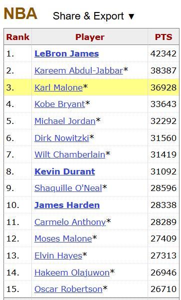 截至目前,詹姆斯以42342分高居历史总得分榜第一位。