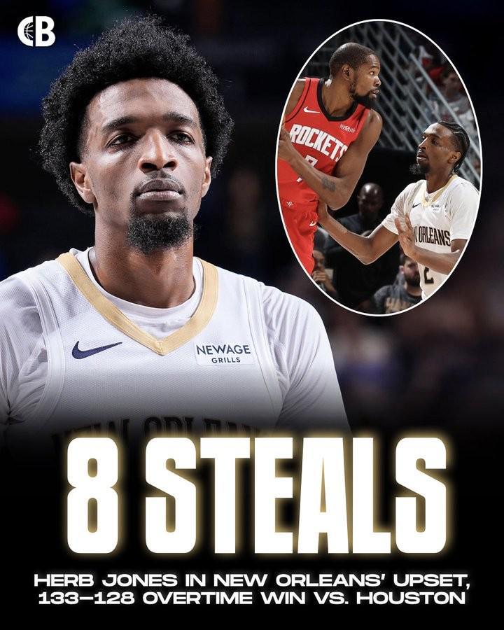 据统计,8次抢断是琼斯职业生涯的单场抢断数新高,他也凭借着强悍的防守表现帮助鹈鹕完成超级逆转。