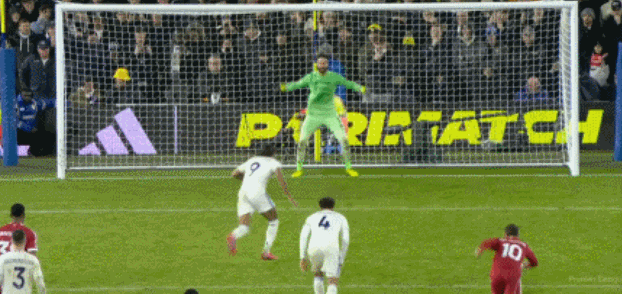 第73分钟,尼翁托禁区左侧突破下底,科纳特倒地铲抢碰倒尼翁托,随后VAR介入,主裁判观看视频回放后,判给利兹联点球,勒温主罚命中,利兹联扳回一城,2-1!
